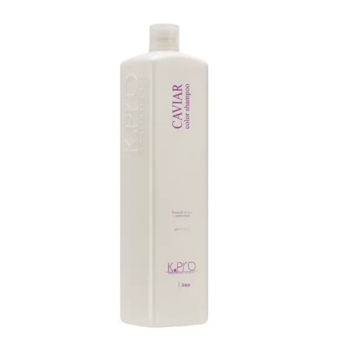 Shampoo K.Pro Caviar Color 1000ml hidrata profundamente reconstruindo os fios. Ideal para cabelos volumosos.
