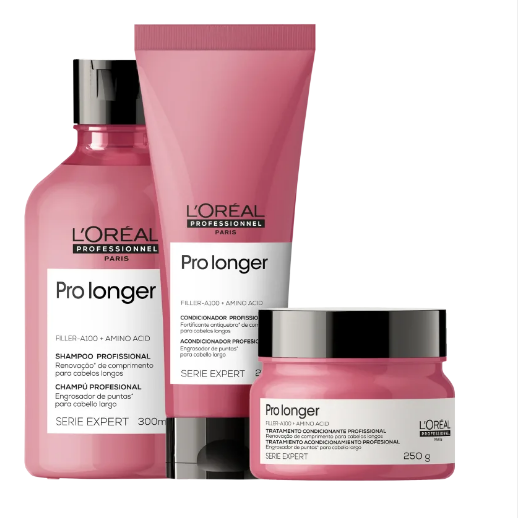 - L'Oréal Professionnel Serie Expert Pro Longer - Shampoo 300ml: limpa completamente e conta com a tecnologia da Co-Emulsão, que apresenta moléculas 50 vezes menores do que as tradicionais, para penetrar profundamente na fibra e formar um filme protetor.