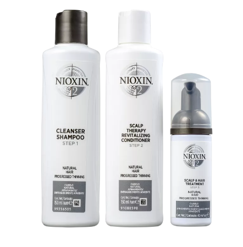 Kit de tratamento para cabelos ralos naturais. Nioxin Trial Sistema 2 de Tratamento Contra Afinamento Capilar recupera a saúde do couro cabeludo e espessura dos fios. Perfeito para quem está sofrendo de queda e afinamento acentuado.
