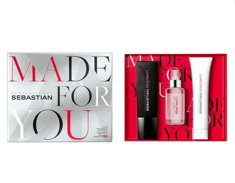 O Kit Sebastian Professional Penetraitt Made For You repara os danos dos fios com hidratação e reconstrução intensiva. Seu uso aumenta a resistência e a elasticidade com a reconstrução dos fios.