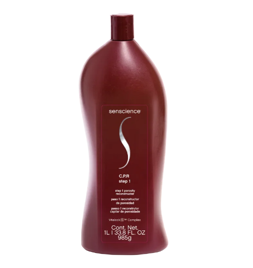 Senscience C.P.R. Step 1 Porosity Reconstructor é elaborado com elementos reconstrutores que devolvem a massa perdida durante processos químicos, uso prolongado de secador e chapinha e demais agressões do ambiente e aumenta a resistência do cabelo à quebra.