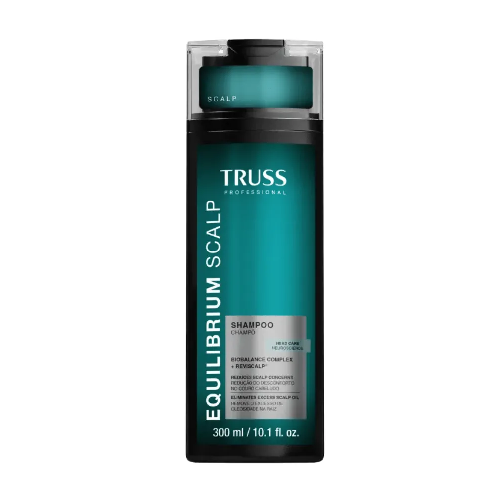 Shampoo para cabelos oleosos e com problema no couro cabeludo. TRUSS Equilibrium Scalp garante resultados desde a primeira aplicação.