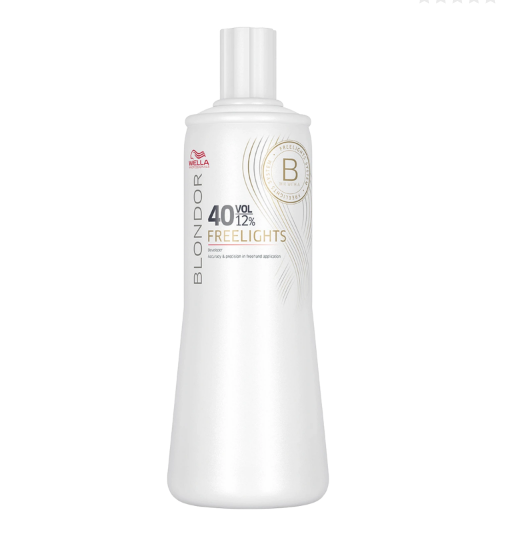 Oxidante profissional 40 volumes. Wella Professionals Blondor Freelights 12% ilumina intensamente, com mais delicadeza e resultado natural. Proporciona mechas e cabelos mais claros por inteiro com menos danos e uma abertura de cutículas mais suave.