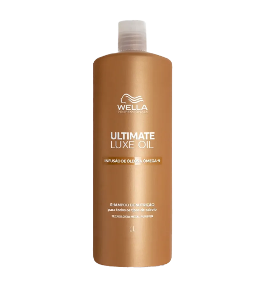 Shampoo para todos os tipos de cabelo. Wella Professionals Ultimate Luxe Oil limpa e desintoxica os fios, além de entregar brilho e maciez. O Shampoo Wella Professionals Ultimate Luxe Oil conta com a tecnologia Metal Purifier que ajuda a remover o metal e as impurezas acumuladas nos fios, restaurando sua vitalidade e preparando-os para receber a nutrição profunda proporcionada pelos outros produtos da linha. Com ingredientes luxuosos como Óleo de Argan, Amêndoas e Jojoba, conhecidos por suas propriedades nutritivas e hidratantes, juntamente com o Ômega-9 para proteção externa dos fios, cada produto da linha Ultimate Luxe Oil é formulado para nutrir e proteger os cabelos de dentro para fora.
